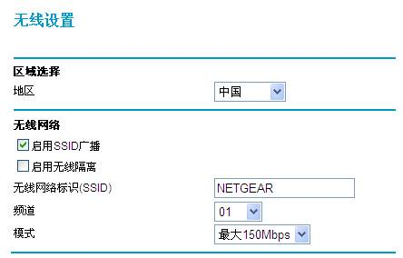 【注意】无线网络标识默认NETGEAR,也可以用数字字母任意命名,进行中继的两个路由器,SSID可以相同,也可以不同。如果希望无线客户端在两个无线路由器的范围内实现漫游,请将SSID设为相同。